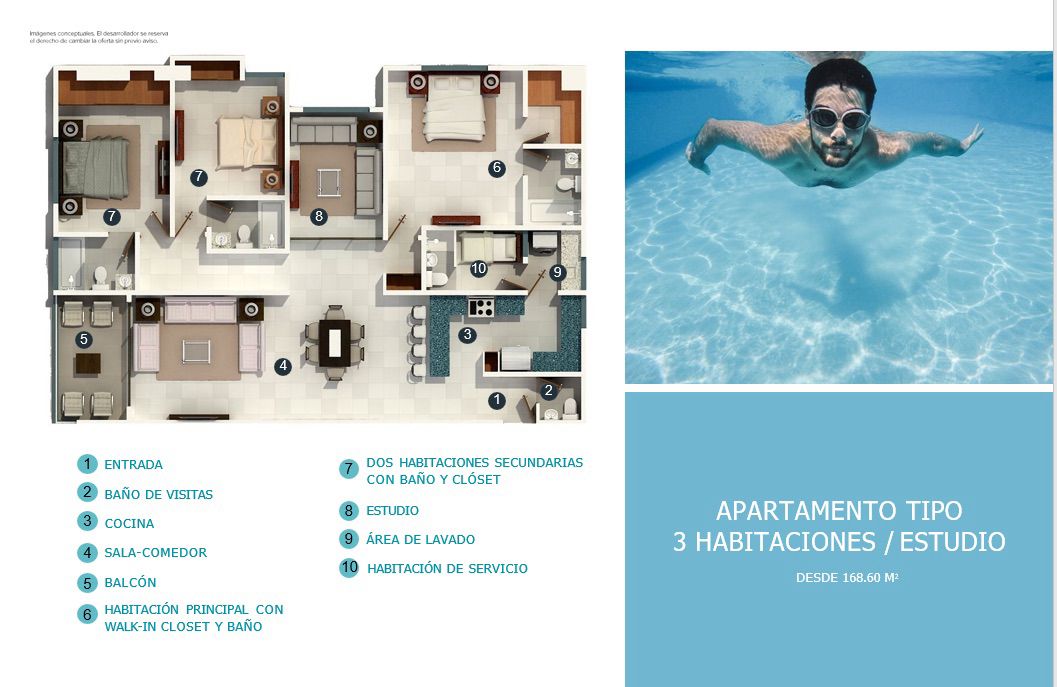 Desde: US$183,000 hasta US$248,000Ubicación: Santo DomingoCaracterísticas:-Torre de 16 niv ...